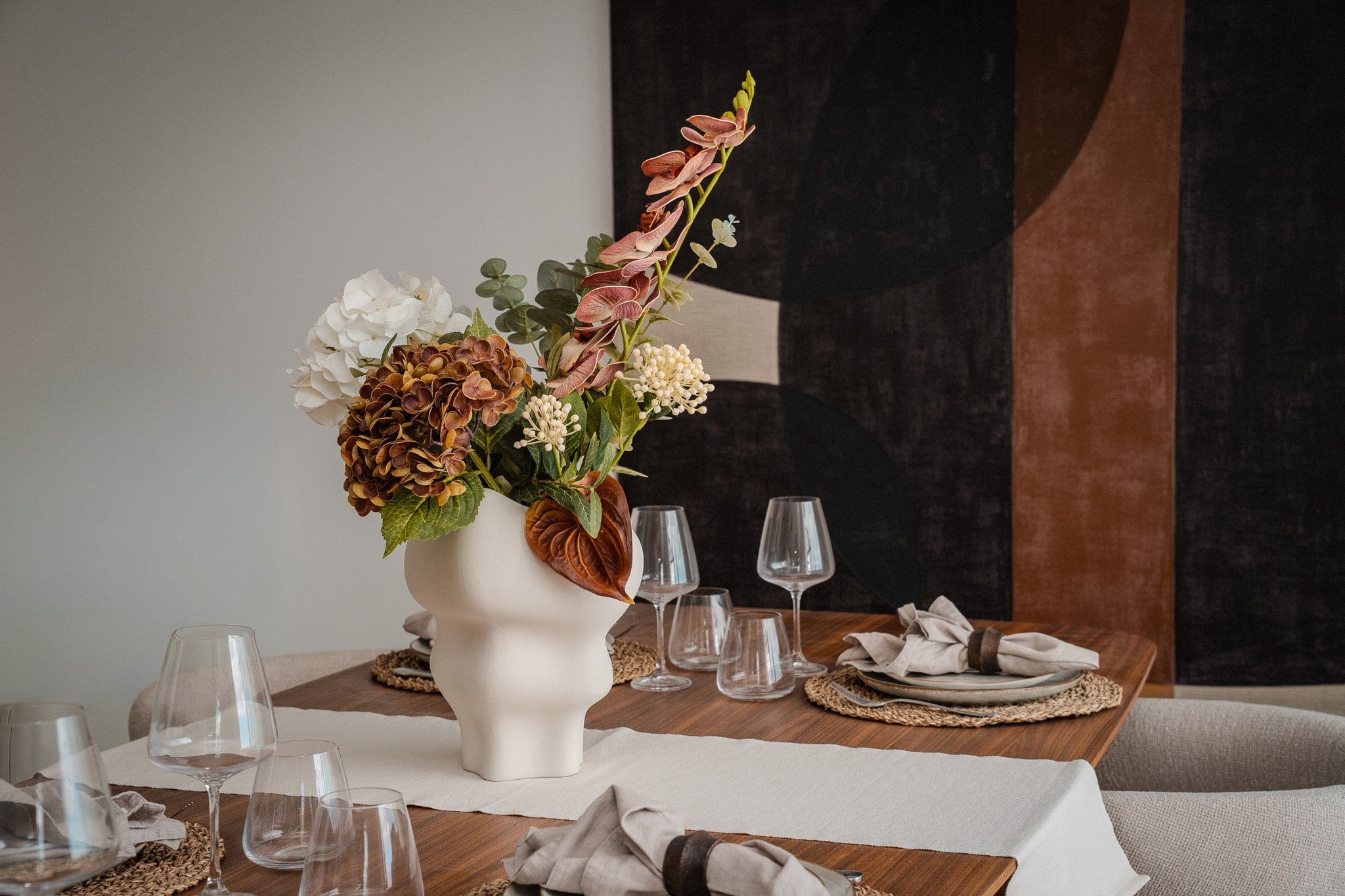 To us, a home is a living portrait. Every line, every shadow, every object plays its part. Fresh flowers carried the right emotion - but not the longevity. Beauty that wilted within days simply didn’t belong in the world we envisioned: a world defined by movement, travel, and the pursuit of lasting elegance.